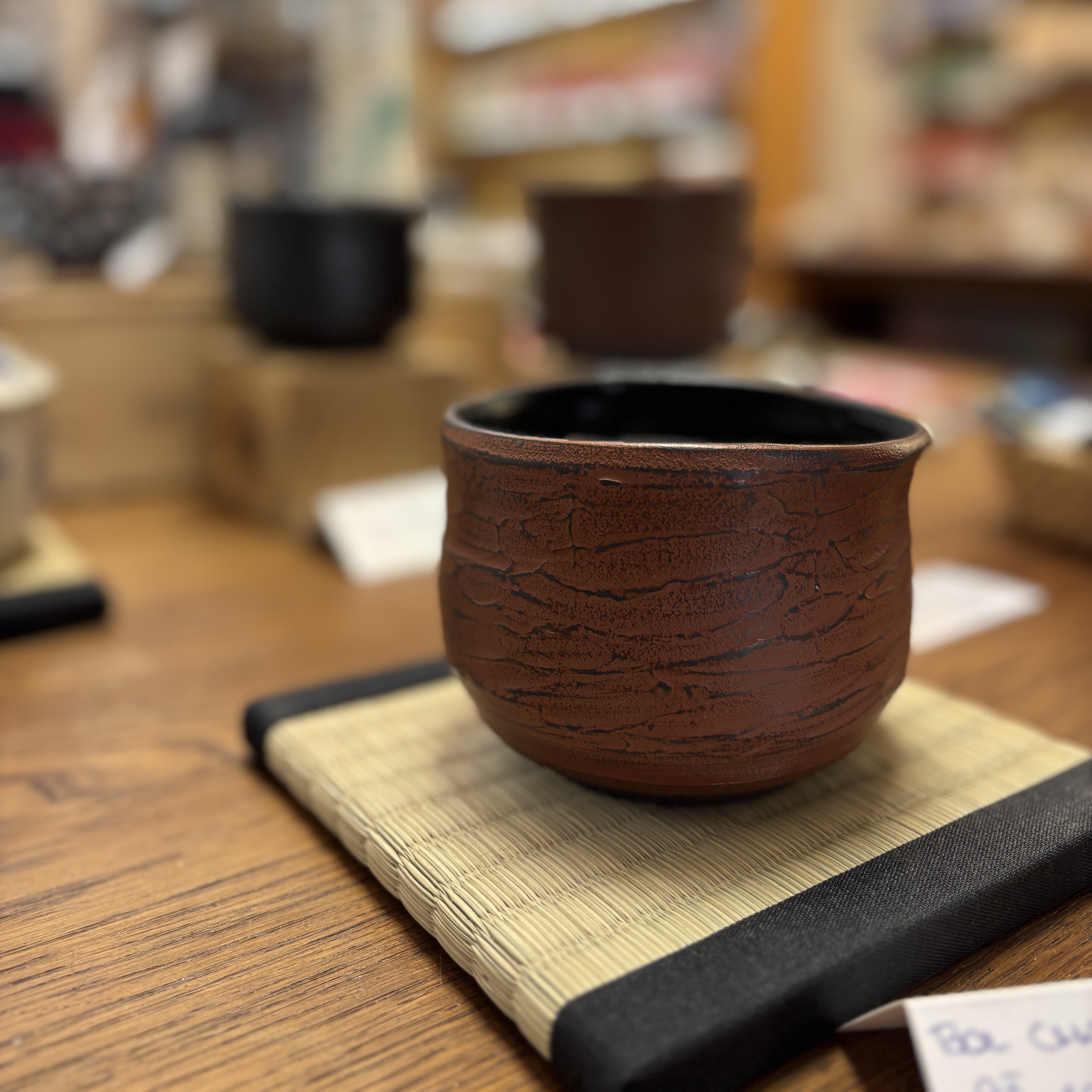 La laque japonaise Urushi qui n’est pas utilisée lors des réparations va orner l’extérieur de jolies bols chawan en grés.